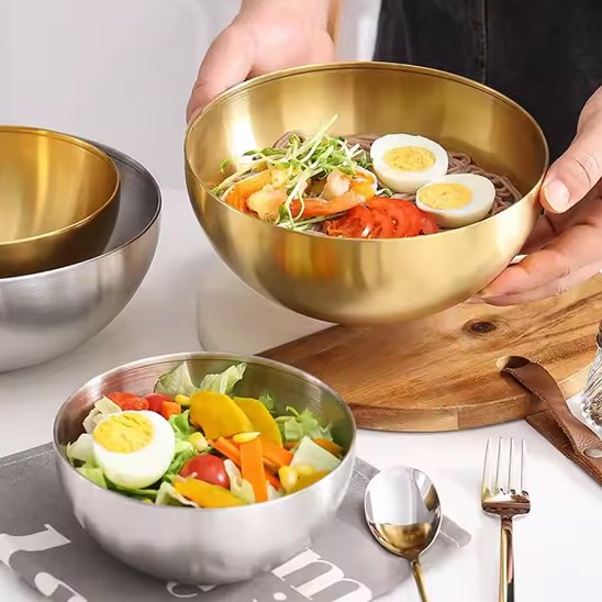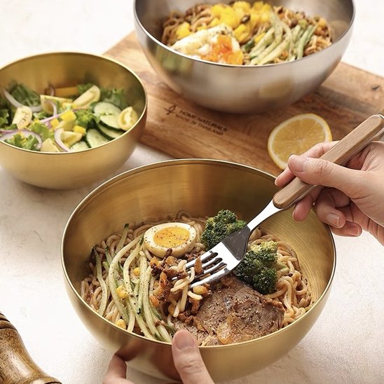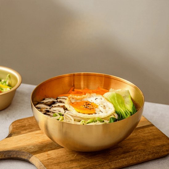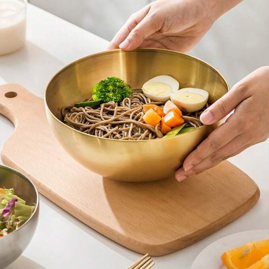 Imaginez le contraste saisissant entre la fraîcheur colorée de vos salades et l'éclat chaleureux de ce saladeier doré. N'avez-vous pas remarqué comme la présentation influence notre perception des saveurs ?